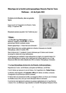 AG 2022, Historique de la Société anthroposophique Branche Paul de Tarse en bref